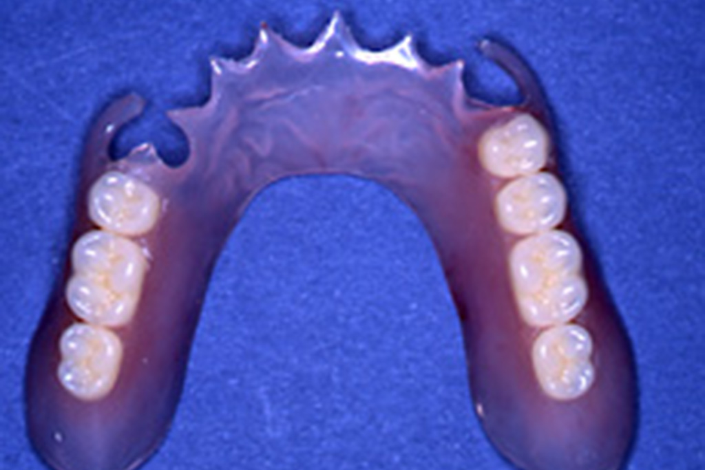 何度作り直しても痛みが取れない、食べ物をかみ砕くときに歯グキが痛い。話をしているとはずれやすい。そんな悩みを解消するためバイオシリコンを使ったやわらかい入れ歯(右写真)ができました。